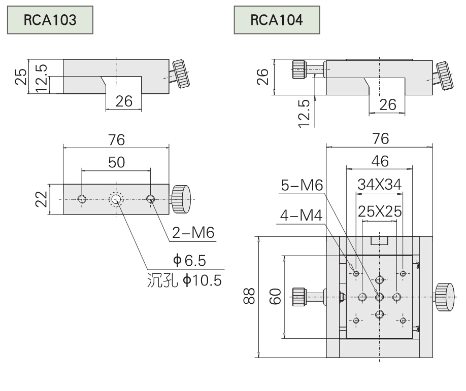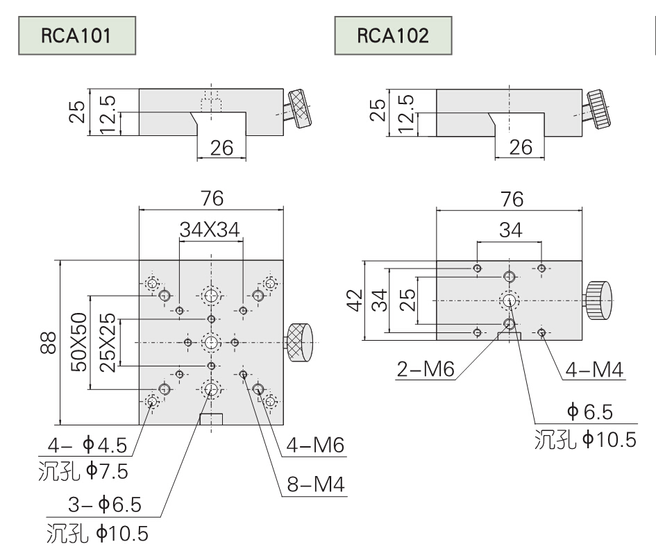 1. Used with RA100 series optical sliding rail and can be combined various adjusting mounts into a coaxial optical system