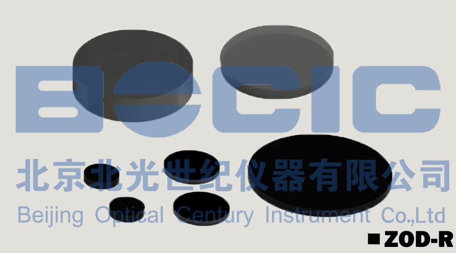 反射型濾光片,在濾光片一面上鍍Ni-Cr-Fe金屬膜,使其在從可見光區到近紅外光區的寬波段內保持近似相等的能量透過率。在400nm到700nm波段使用效果******。此系列在H-K9光學玻璃基底上,鍍不同光密度(OD)膜。中性密度濾光片通過光密度(OD)來阻擋光學能量,光密度(OD)值高,透過率低,反之,光密度(OD)值低, 透過率高,光密度(OD)值與透射率T的關系公式:T%=10-ODx100或者OD=log10(1/T)。由于金屬膜的吸收特性,反射型濾光片不適用于高強度激光應用。