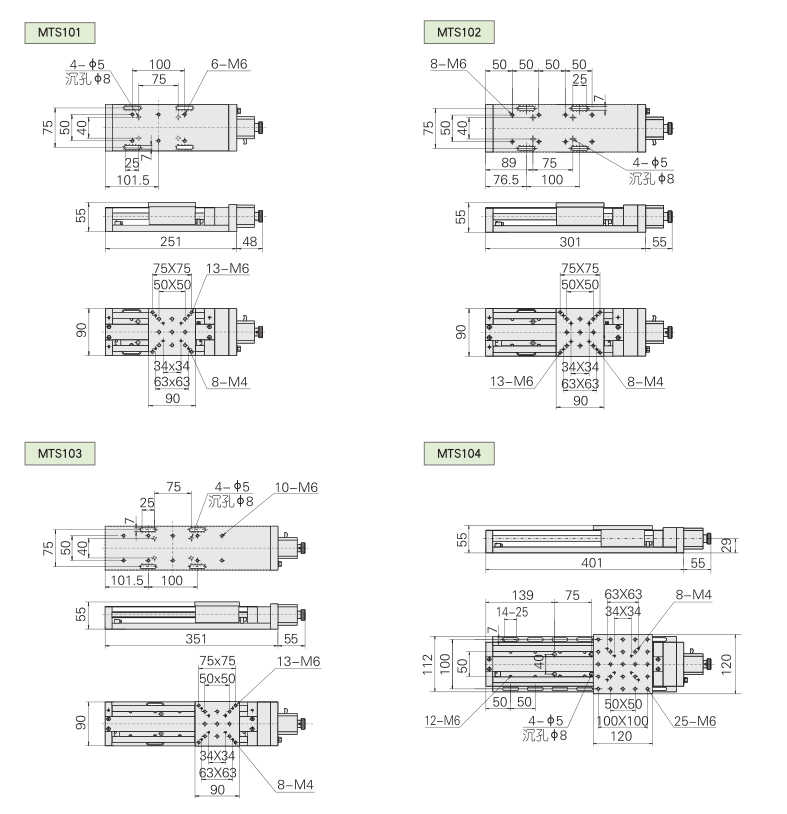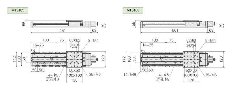 MTS100系列普及型電控平移臺(圓導軌+滾珠螺桿)