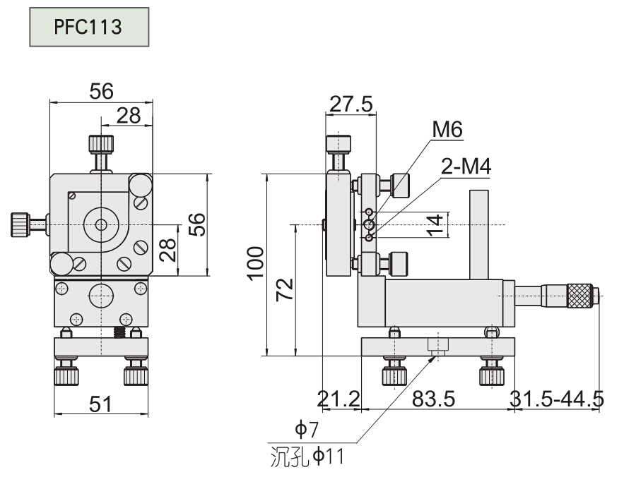 PFC111型精密光纖耦合器與顯微物鏡座一體化,便于光束與光纖耦合