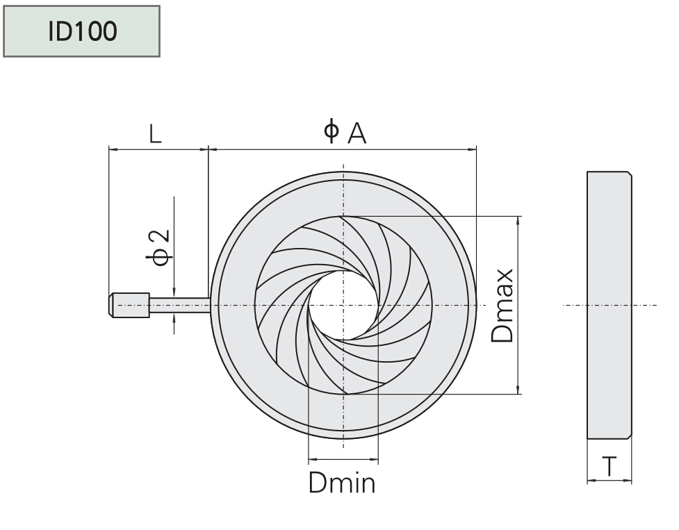 型號 A Dmax Dmin T L ID101 20 φ10 φ1 5 6 ID102 50 φ36 φ2 6 13 ID112 78 φ58.5 φ9 12 16