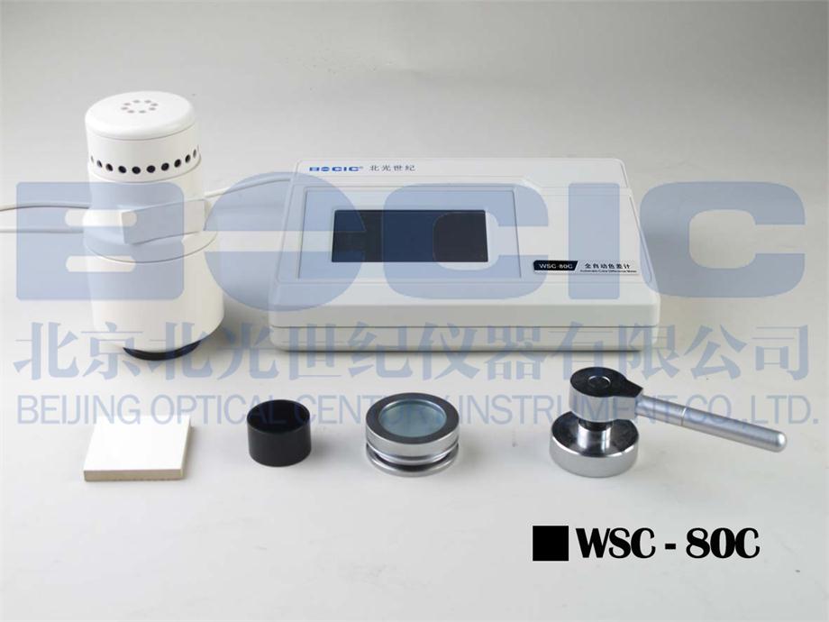 - WSC-80C 全自動色差計是北光世紀研發的全新色差計。在上一代儀器的基礎上,進行了升級換代,采用最新的 ARM CORTEX-M3 32 位內核處理器,研發了新的軟件系統,光學系統得到進一步完善,儀器穩定性、準確度、功能設置方面有了很大提高,增加了數據存儲、管理功能,優化濾色片配比使儀器測量數據更準,活動測頭的設計對測量無法移動的樣品更加方便,寬大的彩色觸摸屏幕,使色彩測量更直觀方便。